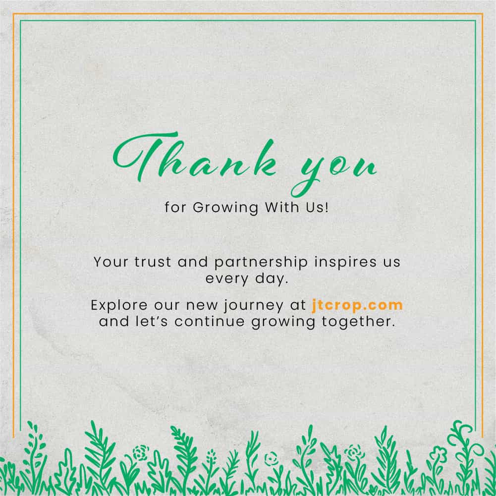 At JT Crop, sustainability is at the heart of everything we do. We are committed to providing eco-friendly solutions that minimize environmental impact while enhancing agricultural productivity. Our products are designed to ensure responsible farming practices, safeguarding the planet for future generations. Together, we’re cultivating a sustainable tomorrow.